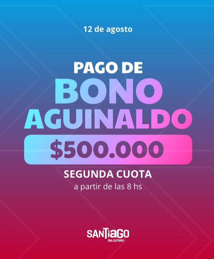 En cumplimiento con el cronograma de pagos, este #martes 12 de agosto a partir de las 8 hs estará disponible en sus cuentas bancarias el pago de la segunda cuota del Bono Aguinaldo a todos los trabajadores de la administración pública provincial.