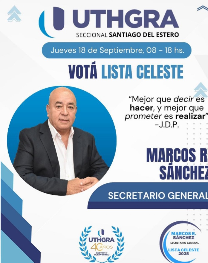 Este jueves 18 de septiembre los trabajadores y trabajadoras de UTHGRA Santiago del Estero tenemos una cita con la democracia sindical.