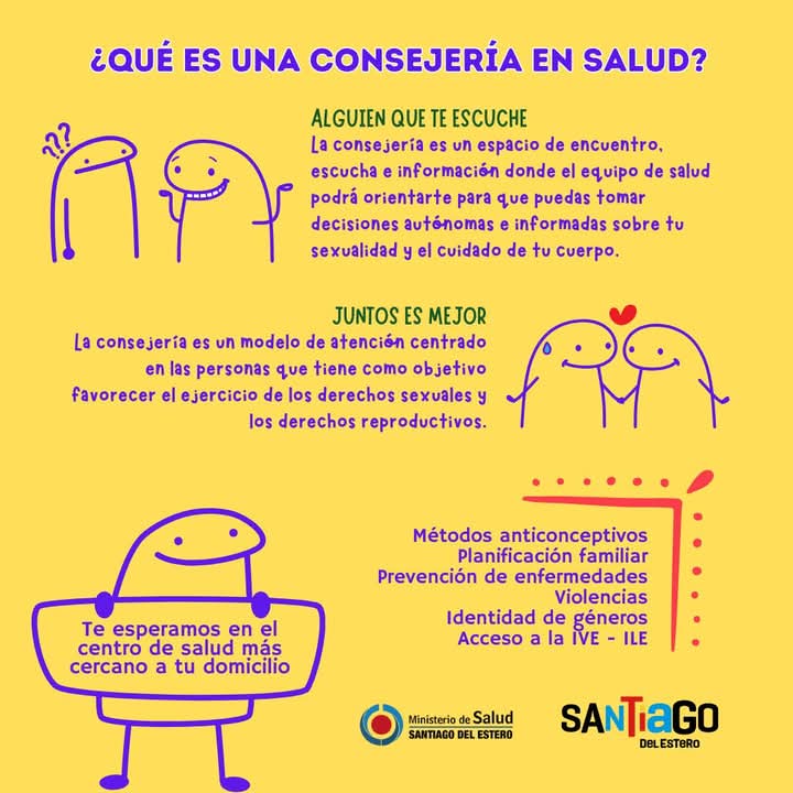 La consejería es un espacio de encuentro, escucha e información, donde el equipo de salud podrá orientarte para que puedas tomar decisiones autónomas e informadas sobre tu sexualidad y el cuidado de tu cuerpo.