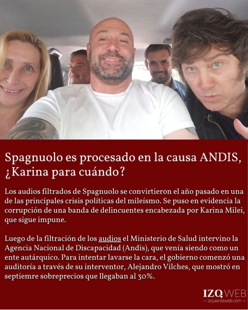 Los audios filtrados de Spagnuolo se convirtieron el año pasado en una de las principales crisis políticas del mileísmo. Se puso en evidencia la corrupción de una banda de delincuentes encabezada por Karina Milei, que sigue impune.