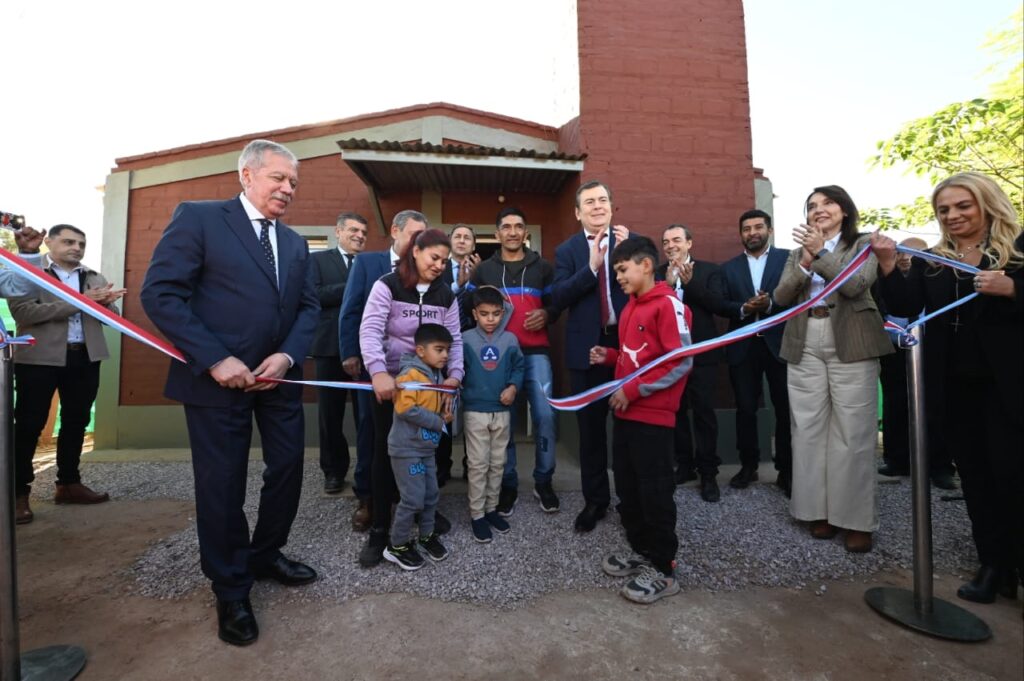 El gobernador Gerardo Zamora, acompañado por el vicegobernador Carlos Silva Neder y el jefe de Gabinete de Ministros, Elías Suárez, visitó este lunes la ciudad de Campo Gallo, cabecera del departamento Alberdi, donde entregó 12 viviendas sociales y dejó oficialmente inaugurado el renovado edificio de la Escuela Nº 913 «Pedro Edgardo Giachino».